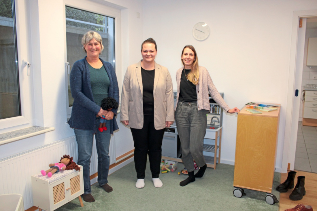 Gertrud Deisenhofer (links) und Lisa Beier (rechts) halfen bei der Einrichtung der Kindertagespflege. Geleitet wird sie von Tagesmutter Marleen Messing.Foto: Gabriele Böhm
