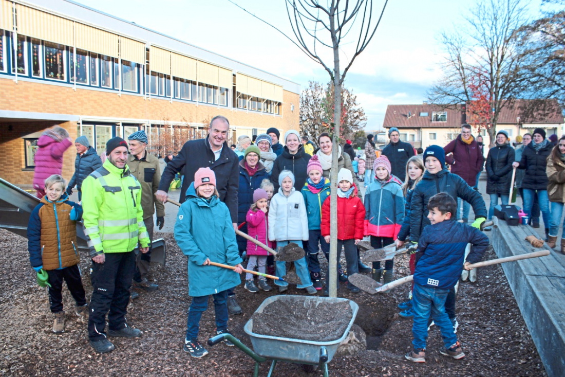 Nachdem der alte Schulhofbaum gefällt werden musste, setzten sich die Kinder der Grundschule Unterensingen mit einer Petition für Ersatz ein – nun wurden dank der Unterstützung der „Baumfreunde UE“, der Gemeinde und zahlreicher Helfer gleich neun Bäume gepflanzt.