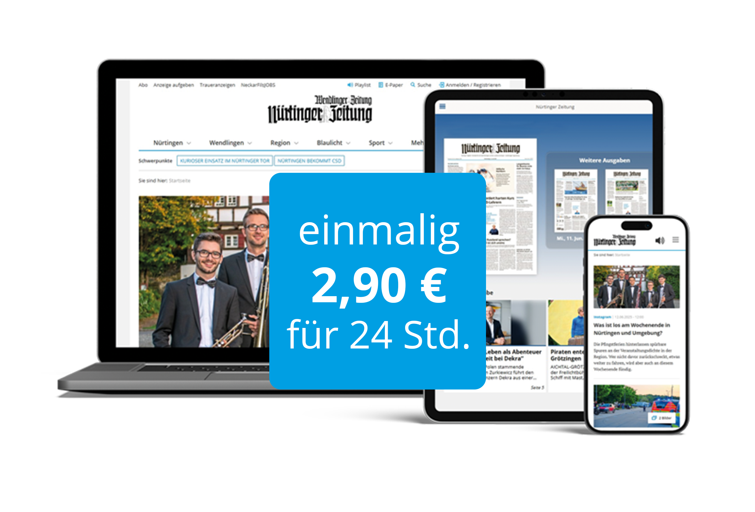 Um die Nürtinger Zeitung / Wendlinger Zeitung digital auch von Montag bis Donnerstag downloaden zu können, steht das Voll-Abo zur Verfügung.