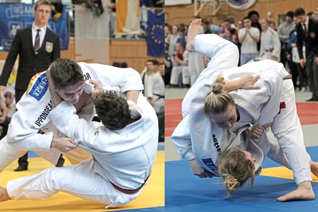 Marius Kölblinger (Universität Tübingen/Gewichtsklasse bis 90 Kilogramm) und Franziska Hänle (RWTH Aachen/bis 78 Kilo) feierten bei den Deutschen Hochschulmeisterschaften in Passau die größten Erfolge ihrer bisherigen Judolaufbahn. Kölblinger (Bild links) zog mit vier vorzeitigen Siegen ins Finale ein. Dort musste er sich Leon Schreder (HöMS Hessen) geschlagen geben. Franziska Hänle (rechts) ...