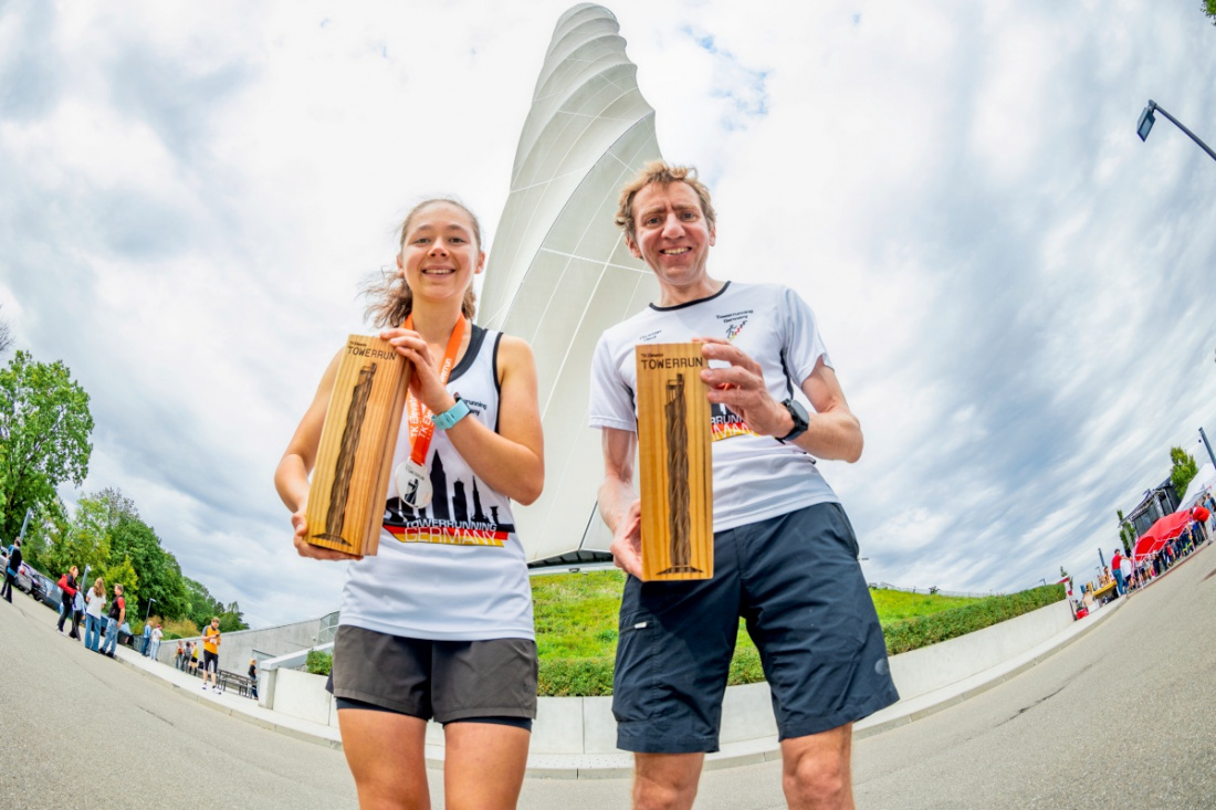 Beim sechsten TK-Elevator-Towerrun stürmten über 1250 Treppenläufer aus 23 Nationen Deutschlands höchste Aussichtsplattform in Rottweil. 1390 Stufen und 232 Höhenmeter waren zu bewältigen, die Top-Läufer der Towerrunning-Szene dominierten die Rennen – und damit auch Sarah Seher (links). Die Wendlingerin kletterte bei den Frauen zum Sieg, Christian Riedel (rechts) gewann bei den Männern. Seher ...