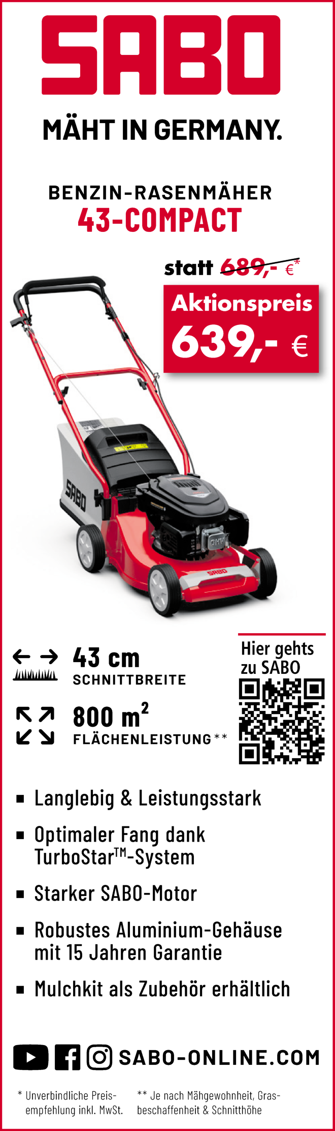 Mayer & Sohn ist seit 2010 QMF‑zertifiziert und unterzieht sich jährlich strengen Qualitätsprüfungen. Als AS‑Motor‑Stützpunkthändler und mit SABO als starker Hausmarke im Bereich Rasenmäher setzt das Unternehmen auf hochwertige Marken. Wer hier ein Gerät kauft, profitiert nicht nur von fundierter Beratung, sondern auch von einem Service, der im eigenen Haus höchste Priorität hat.