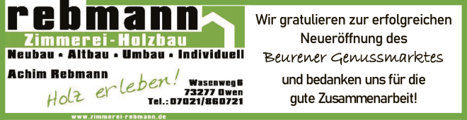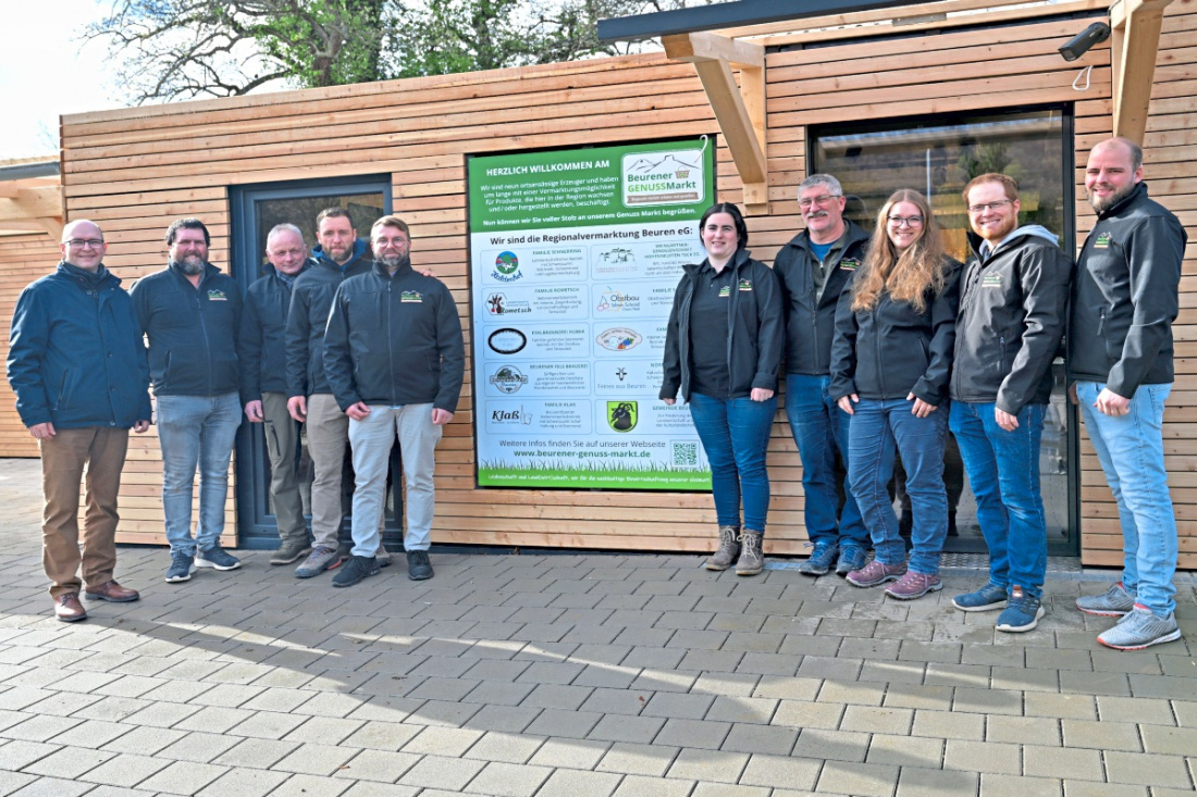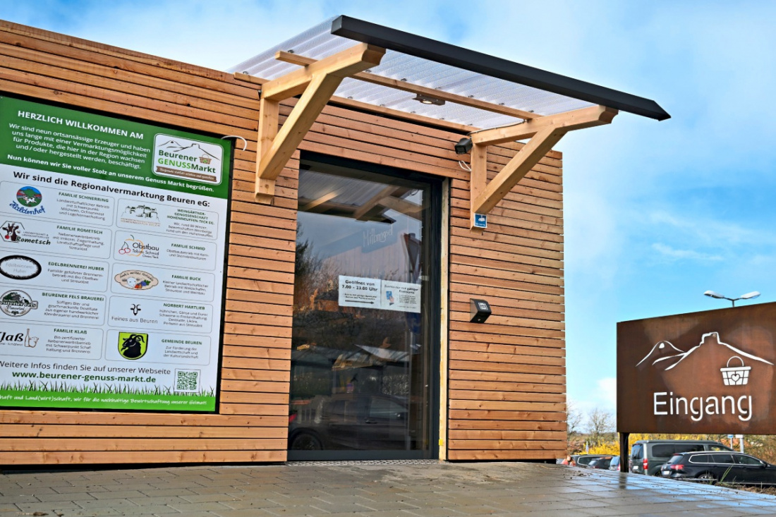 „Mit dem Beurener Genussmarkt möchten wir etwas bieten, was es sonst nirgends gibt“, erklärt Martin Schnerring, Erster Vorsitzender der Regionalvermarktung Beuren eG. Zusammen mit seiner Familie bewirtschaftet er den Haldenhof in Beuren-Balzholz. Und Beurens Bürgermeister Daniel Gluiber stellt klar: „Der SB-Markt möchte keine Konkurrenz zu den innerörtlichen Geschäften sein. Aber er konzentriert ein vielfältiges Hofladen-Angebot an einem Ort, man kann also spritsparend und klimaschonend einkaufen, die Bushaltestelle ist direkt gegenüber.“