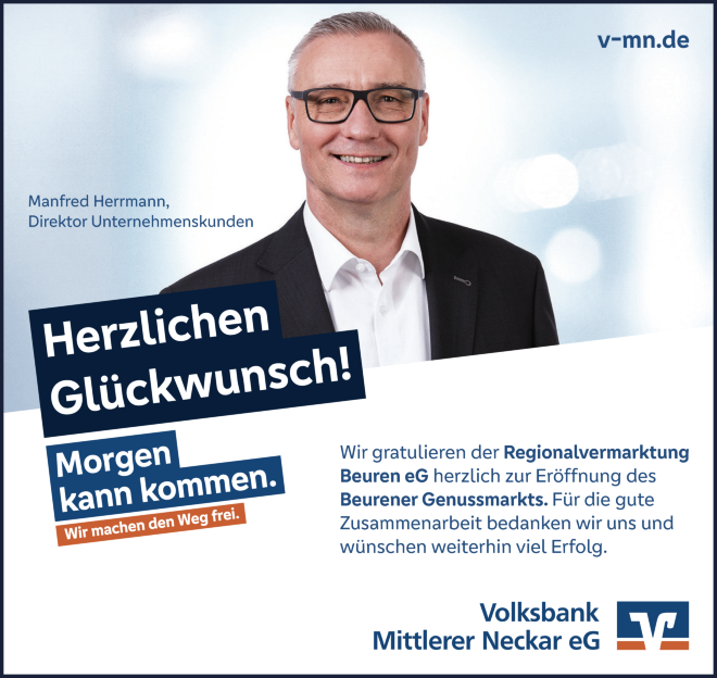 Für Bürgermeister Gluiber ist es wichtig, mit diesem Engagement die örtliche Landwirtschaft zu unterstützen. „Es geht darum, zu zeigen, was Landwirtschaft leistet, auch bezüglich der Pflege der Kulturlandschaft, einschließlich Streuobstwiesen, Weinbau und Wälder, und damit für die Allgemeinheit.“ Und weiter: „Mir persönlich ist es wichtig, mit dem Beurener Genussmarkt einen Mehrwert zu schaffen.“
