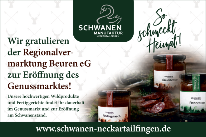 Aus Liebe zur Region: Die Regionalvermarktung Beuren eG eröffnet den Beurener Genussmarkt und lädt zum Fest am Sonntag, 12. April, von 11 bis 17 Uhr, ein.