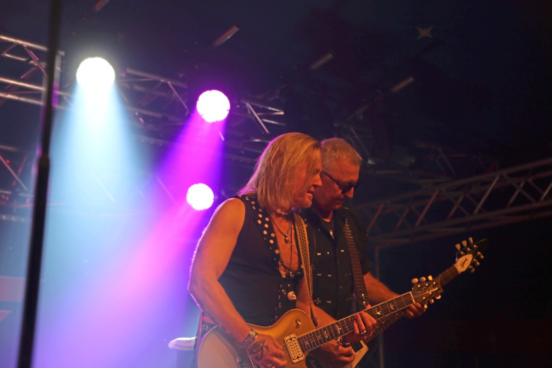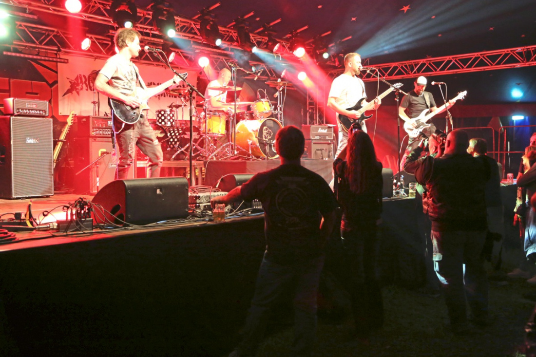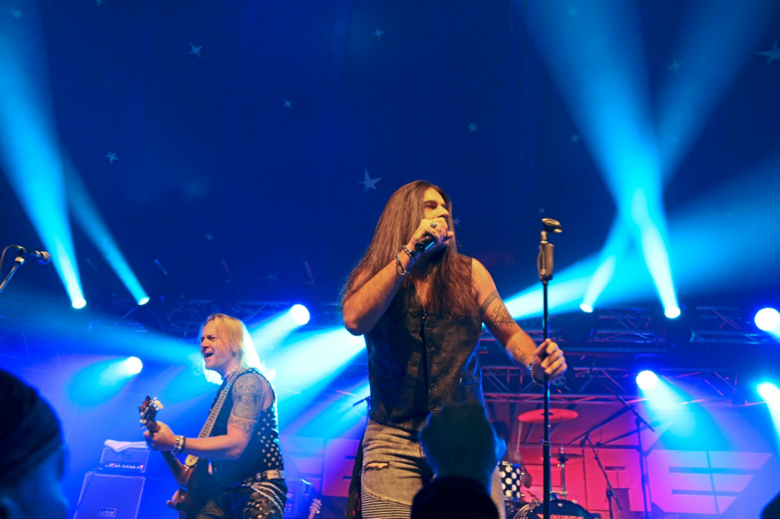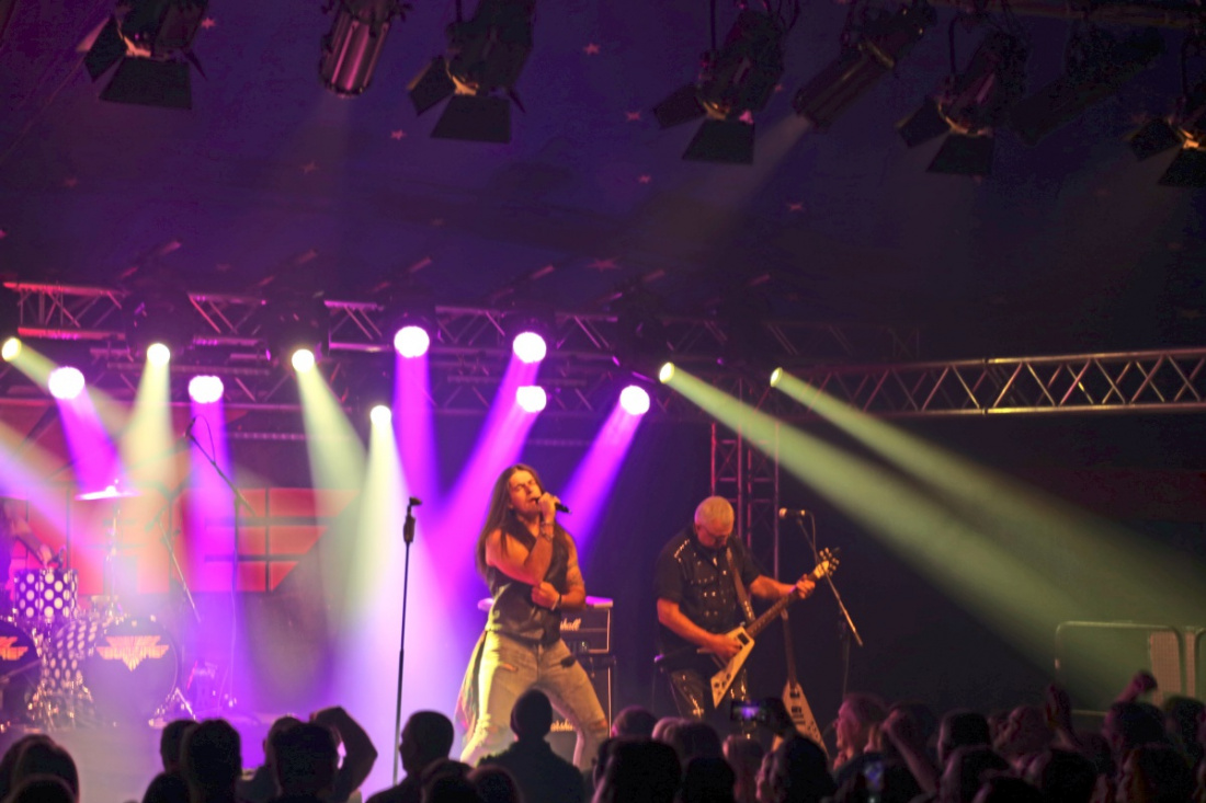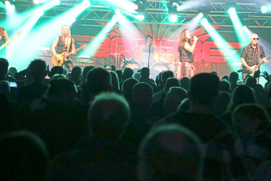 Langfristig geplant oder ganz spontan: Am Freitagabend besuchen Fans der Hard-Rock-Band Bonfire das Zeltspektakel in Wendlingen. Unter donnerndem Applaus und begeisterten „Bonfire“-Rufen kommt die Band auf die Bühne.