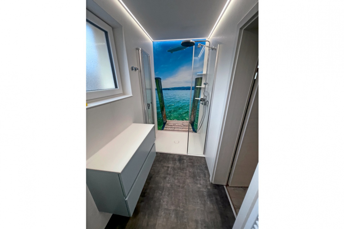 Das fugenlose Wandsystem des Unternehmens überzeugt durch seine moderne Optik, seine robuste Verarbeitung sowie die pflegeleichte, kalk- und Schmutz abweisende Oberfläche.
