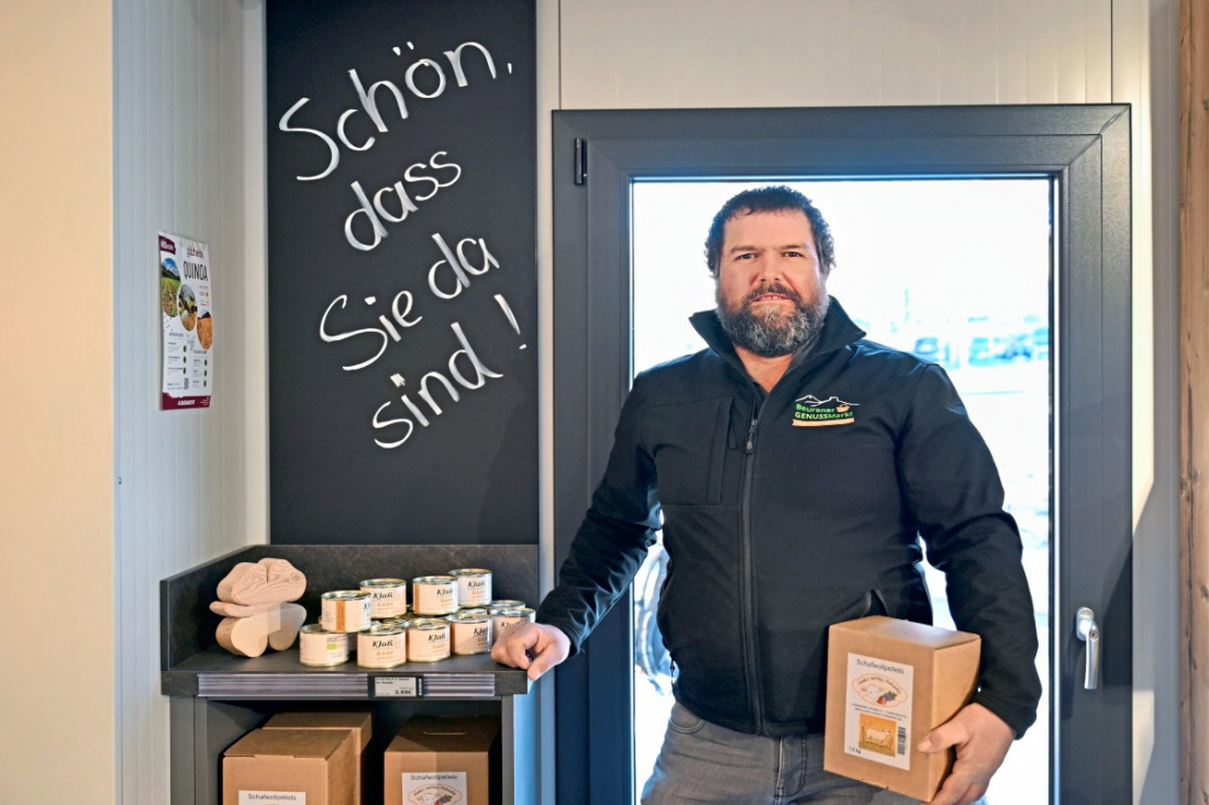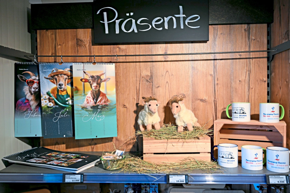 Zum Verschenken – oder für sich selbst – gibt es viele Inspirationen. Etwa ein Herz aus hiesigem Holz, Stifte oder Vesperdosen mit dem Beurener Geißböckle-Motiv, Keramikprodukte, Seifen mit Alpaka-Keratin. Sogar an Vierbeiner ist gedacht, mit delikatem Hundefutter. Und Schafwollpellets zur Bodenverbesserung sind ebenfalls zu entdecken. Ob frische Brötchen direkt aus der Backstube der ortsansässigen Bäckerei Walter, Eier von Hühnern, die hier leben, saisonales Obst und Gemüse aus der Nachbarschaft: Das Angebot des neuen Beurener Genussmarktes lädt zum Entdecken ein.