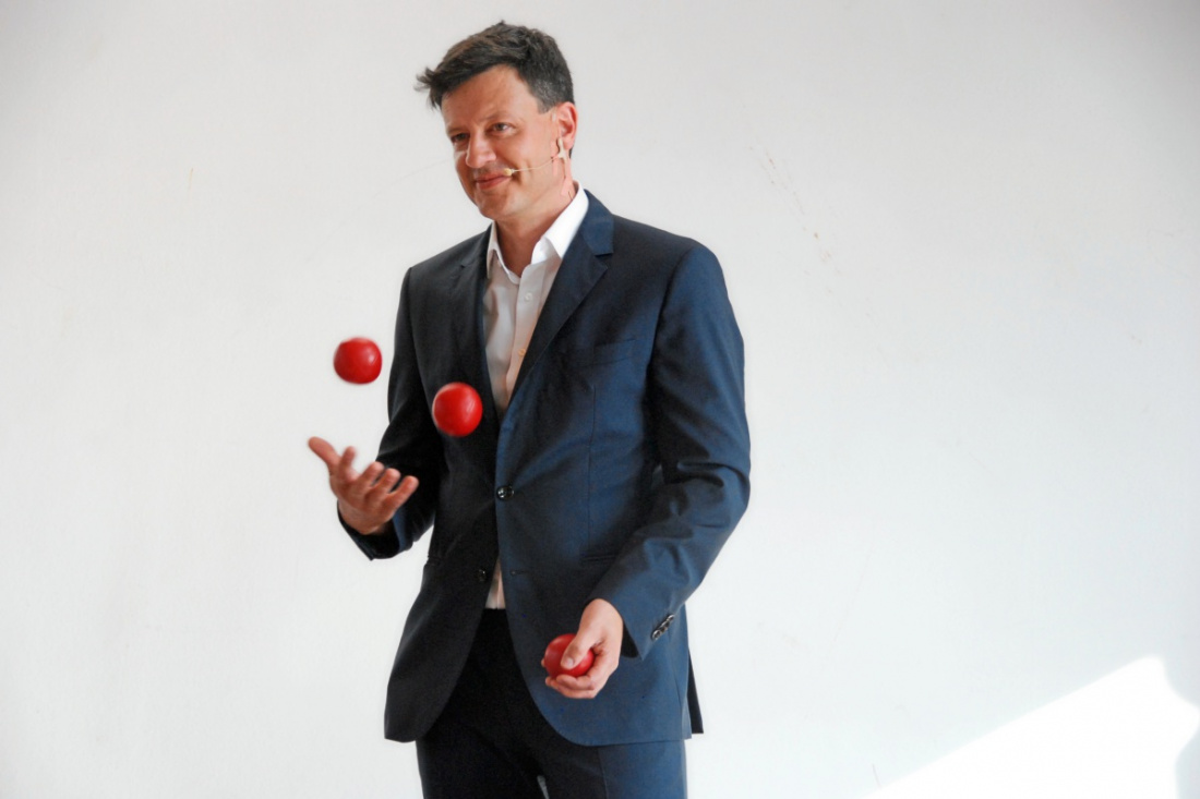 Der Kindergarten und das Familienzentrum „Am Berg“ lädt zum Vortrag „Wie wäre ich bloß ohne Fehler?“ mit dem Jongleur und Ökonom Andreas Gebhardt am 14. November in den Treffpunkt Stadtmitte. Im Vorfeld der Veranstaltung spricht er mit unserer Zeitung über Mut, Scheitern und die Kunst, über sich selbst zu lachen.