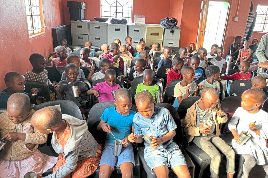 Kinder in der Schule beim Morgenfrühstück.Foto: Takathemba